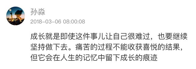 小椰子:给自己一点勇气,留住时间与空间,静静地体会生活,坚持做一些有益的事情,为自己找到一个助力,顺其自然地成长蜕变。