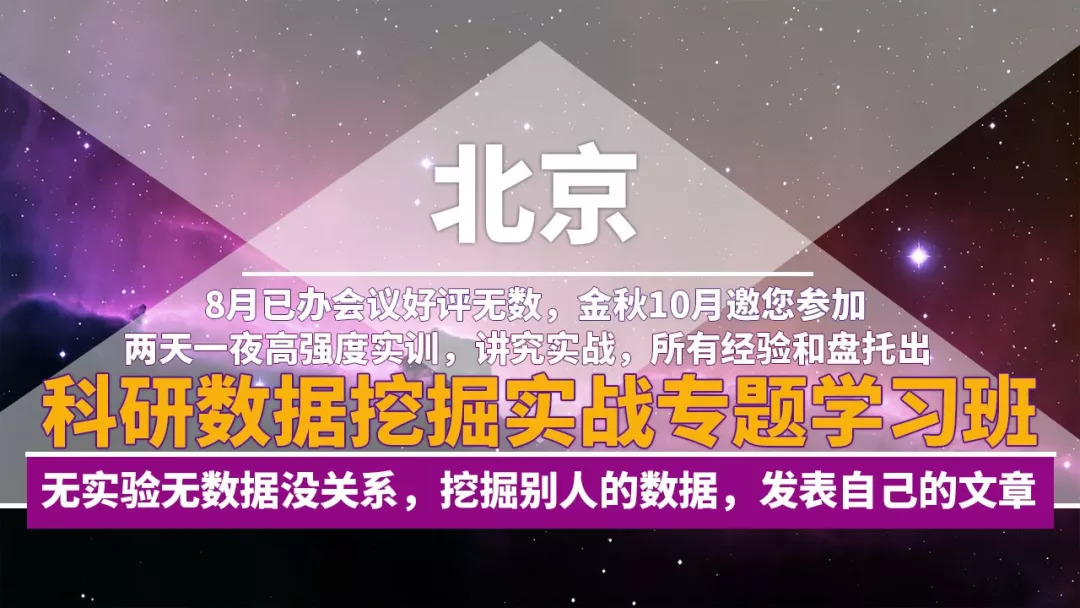 还在认为没有实验就不能发表论文?还在为不精通挖掘GEO,TCGA,SEER等数据库而痛苦不堪?还在为不知道如何找课题找靶点而苦恼?还在为不会那些高大上的图表而暗自伤神?快来参加莫速乎的科研数据挖掘实战专题学习班吧,挖掘别人的数据,发表自己的文章,一次学习,不再报班!