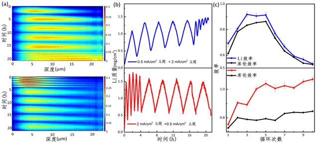 1. 将原位中子深度分析与同位素方法结合,定量地解析了锂金属电池沉积/溶解过程的锂空间分布;