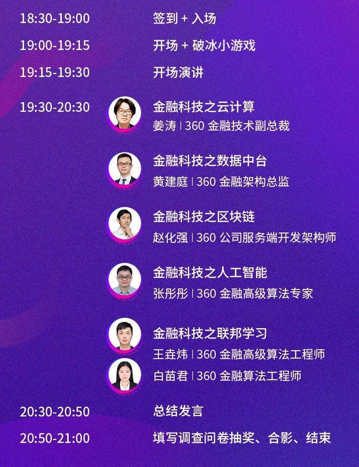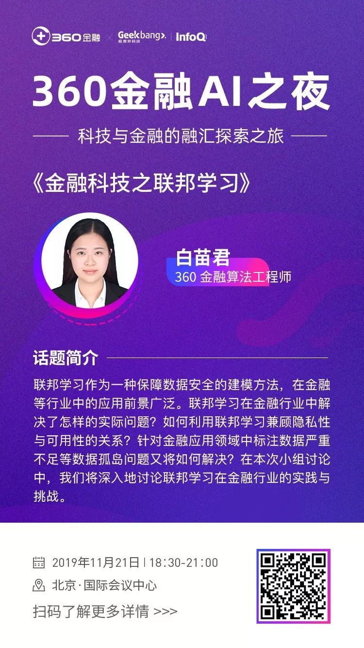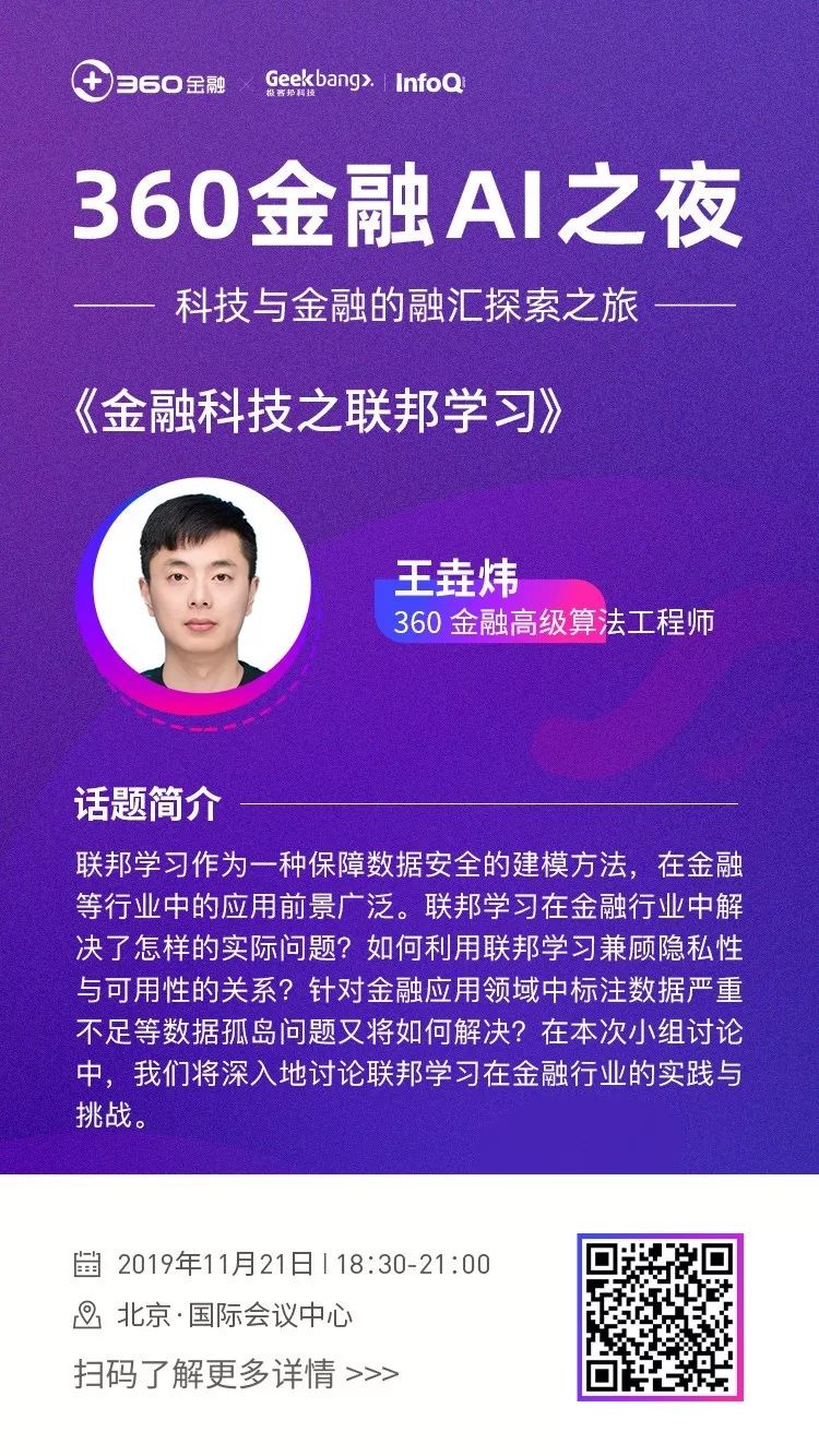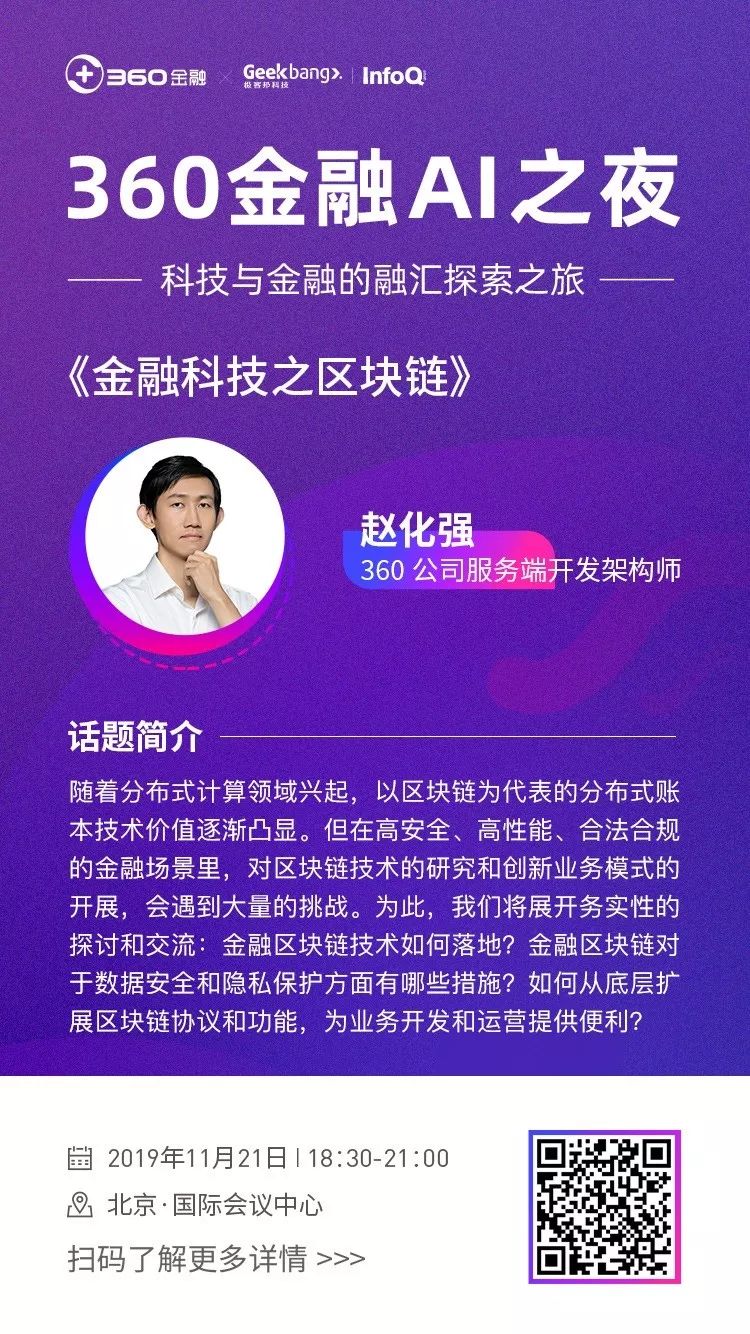 11 月 21 日北京,360 金融的诸位专家联手 InfoQ ,在 AICon 北京 2019 举办“360 金融 AI 之夜:科技与金融的融汇探索之旅”晚场活动,邀请了来自人工智能、数据中台、区块链、金融云等领域的 6 位技术专家,与参会者共同讨论金融科技技术领域的难点与解决思路。