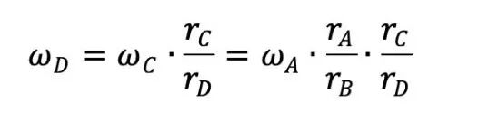 再让第三个半径为rC的齿轮和B同轴转动,所以C和B的转速相等 。最后,再让第四个半径为rD的齿轮D和齿轮C啮合,齿轮D的转速也就可以计算出来了: