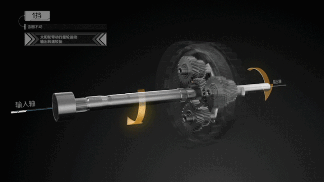 AT变速箱的1挡就是这样的原理。在挂起1挡时,变速箱中的离合器会锁死输出端行星齿轮组的外圈,让行星轮带动上面的行星架输出一个较低的转速。