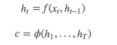 编码器将X逐字读入,并通过递归神经网络(RNN)将其表示为上下文向量c, 然后解码器将c 作为输入估计Y 的生成概率。