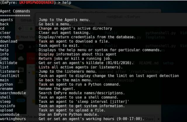 UKFOM…字符串是EmPyre对受害主机的独特标识,之后,可以使用以下命令控制主机