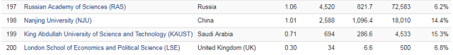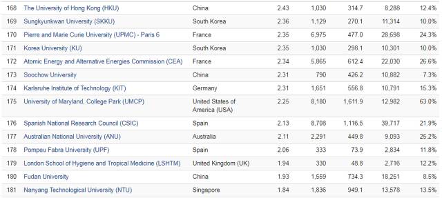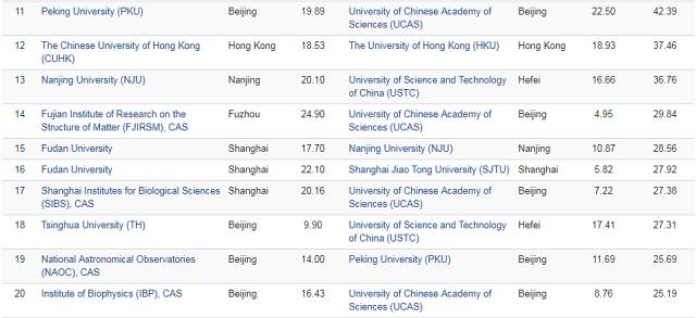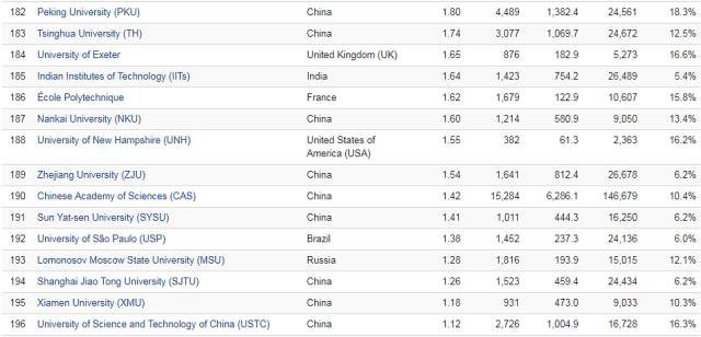 不过,好消息是,仍然有另外 14 家中国机构榜上有名,主要集中在 160~ 200 之间。