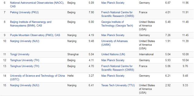 具体看,中国与国际科研论文合作的前几名如下。篇幅有限,原榜单列出了 Top 100,这里仅给出 Top 15: