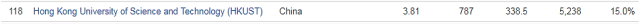 在这份榜单中排名最靠前的中国大学,是香港科技大学,位列第 118。