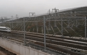 高铁供电任务由分布在线路两侧的牵引变电所、AT所、分区所和钢轨上架设的接触网共同完成,通过受电弓完成动车组取电任务。