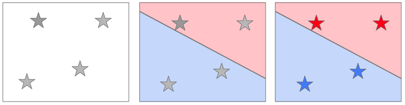 通过选择要使用的机器学习算法,我们可以得到我们想要的输出。在这个问题中,算法的全部工作就是把上图中红色的东西和蓝色的东西分开。