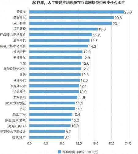 而根据今年刚刚统计出炉的互联网行业各岗位平均薪酬水平一览表显示,人工智能的相关岗位位列第三,平均薪酬达到20.1k,而另外唯二的平均薪酬超过20k的是管理岗和数据开发岗。