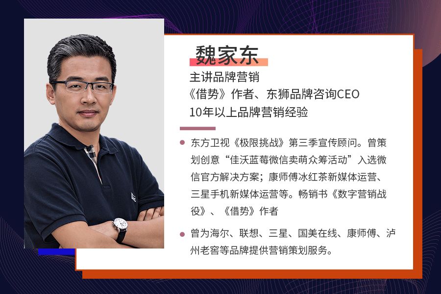 品牌营销专家、《借势》作者@魏家东,主讲品牌营销板块