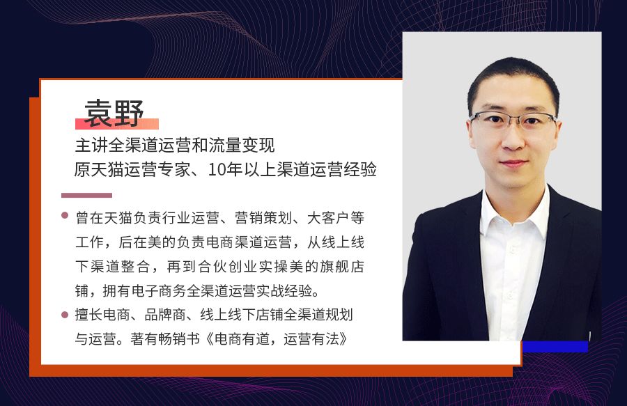 原天猫运营专家@袁野,主讲全渠道运营和流量变现板块