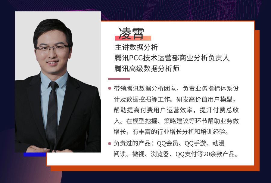 腾讯高级数据分析师@凌霄,主讲数据分析板块