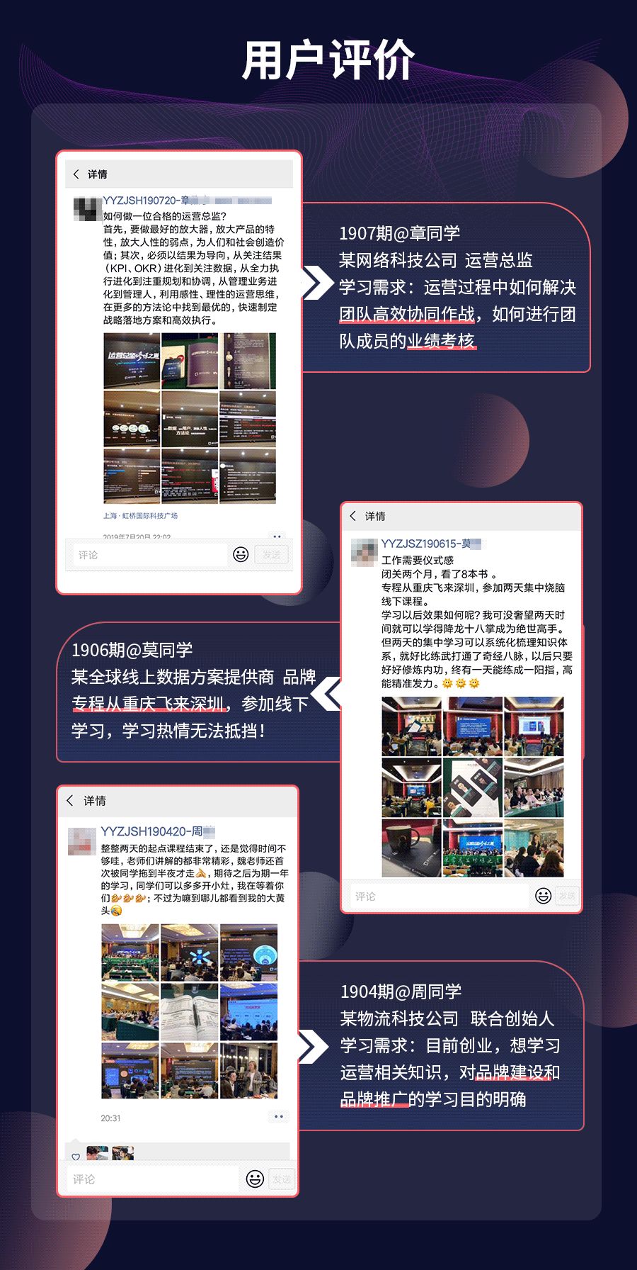 很多往期报名运营总监课的高层管理者或CEO校友也有参加哦,感兴趣就立即联系Leo(Tel/微信:13028897966)咨询吧!
