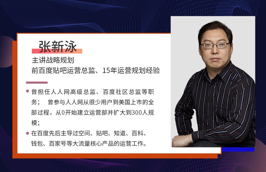 前百度贴吧运营总监@张新泳,主讲战略规划板块