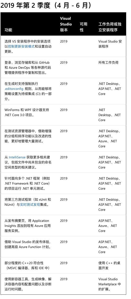 最近微软在官网更新发布了 Visual Studio 2019 年第 2 季度的路线图。