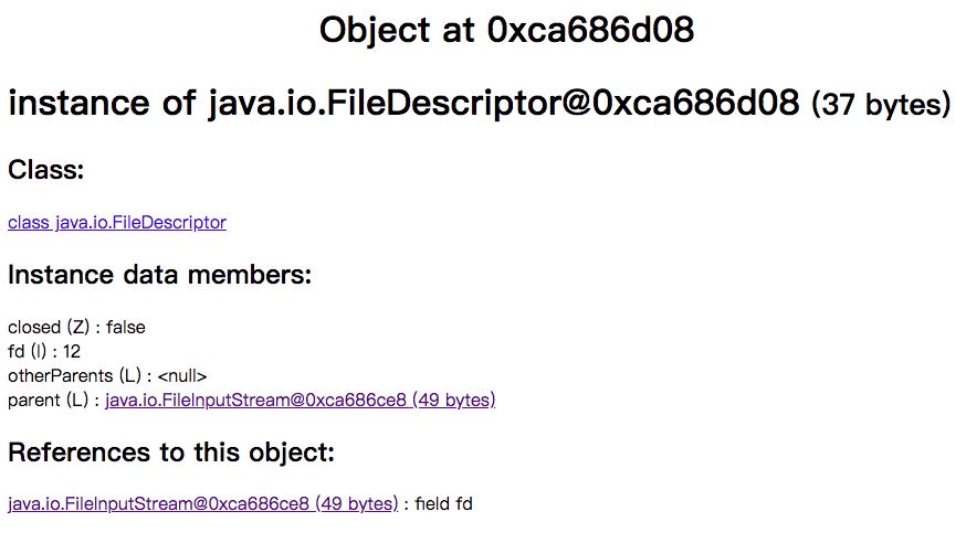 从heap dump里据fd找出对应的java.io.FileDescriptor对象,再找到相关引用
