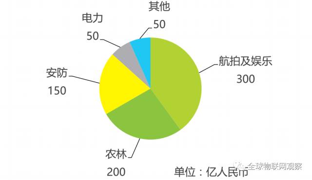 该预测仅为硬件销售规模,并不包含服务,在工业无人机中,服务费用不菲,所以整体规模远超消费级市场。其中农林、安防、电力三大领域是无人机市场的重点细分领域。