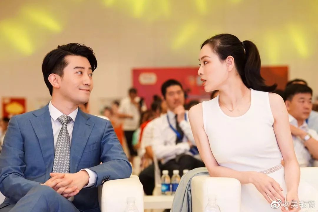 吴敏霞和丈夫张效诚在凤祥品牌发布会现场。图 / 微博@吴敏霞