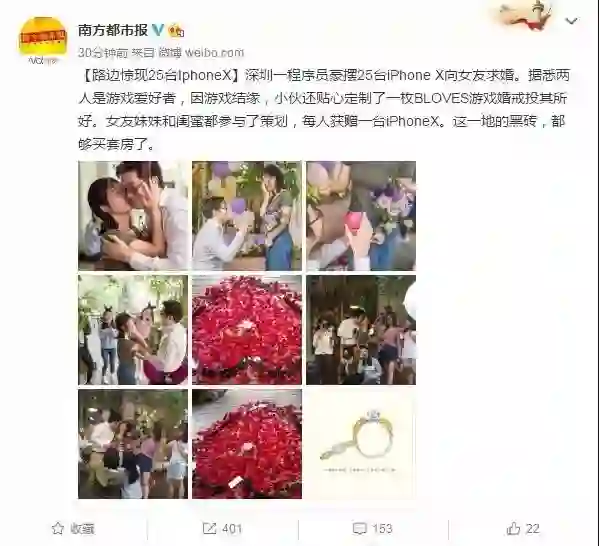 程序员豪摆 25 台 iPhone X 向女友求婚 闺蜜 1 人 1 台