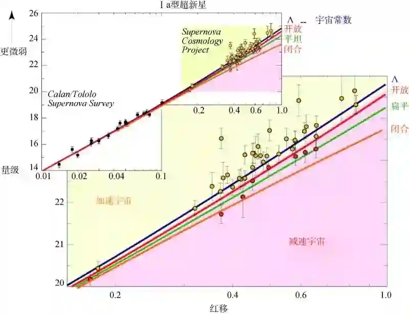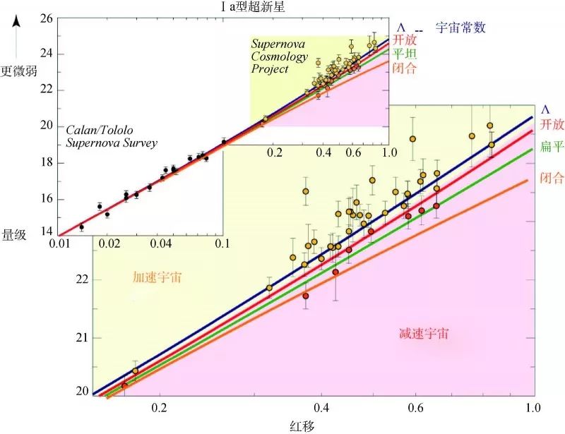 图4 用超新星作为标准蜡烛来研究宇宙加速膨胀