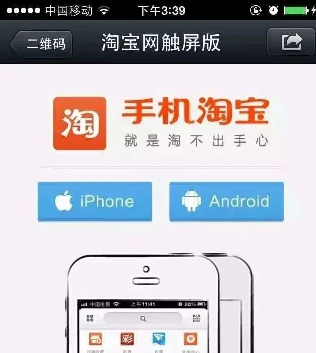 用户在微信中打开淘宝链接,会被导向手机淘宝的下载页