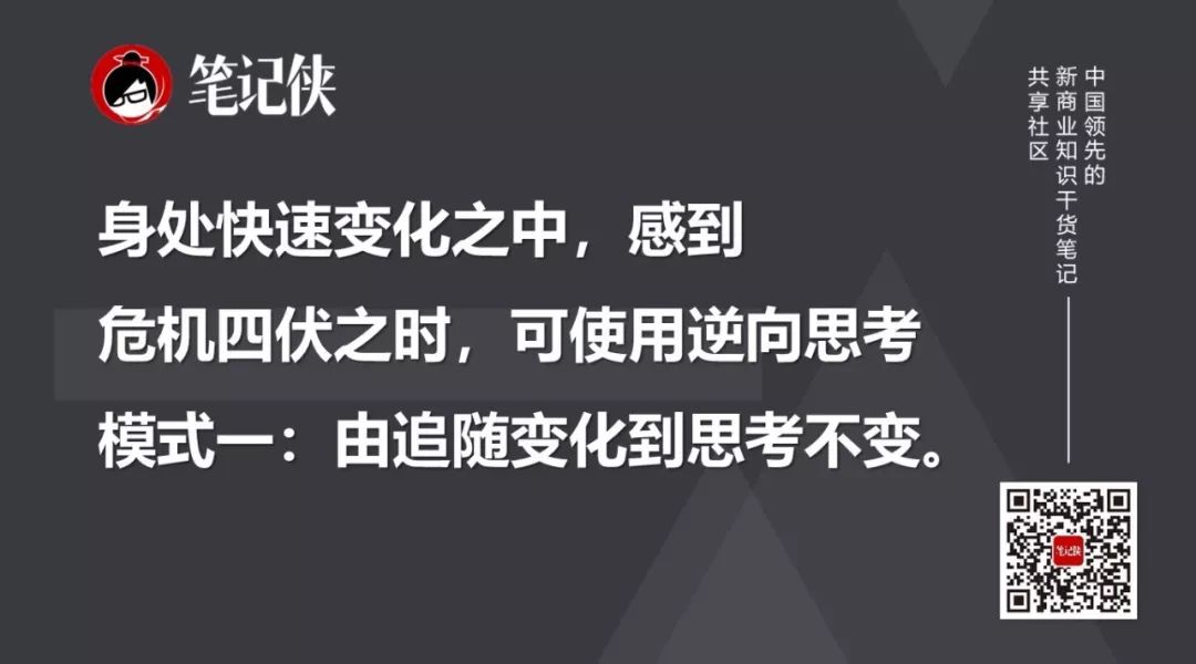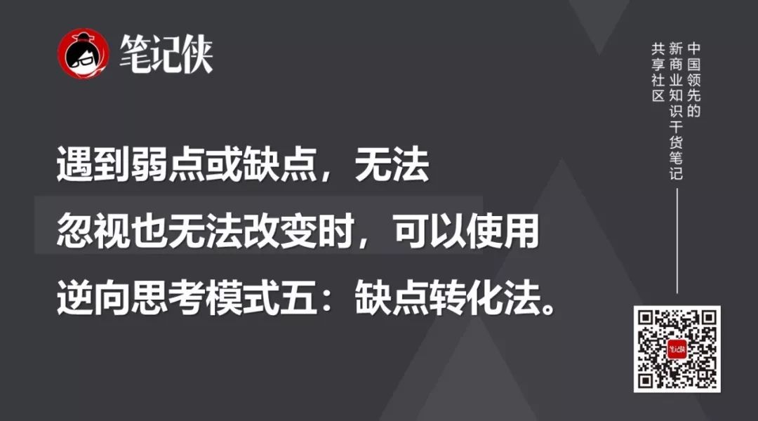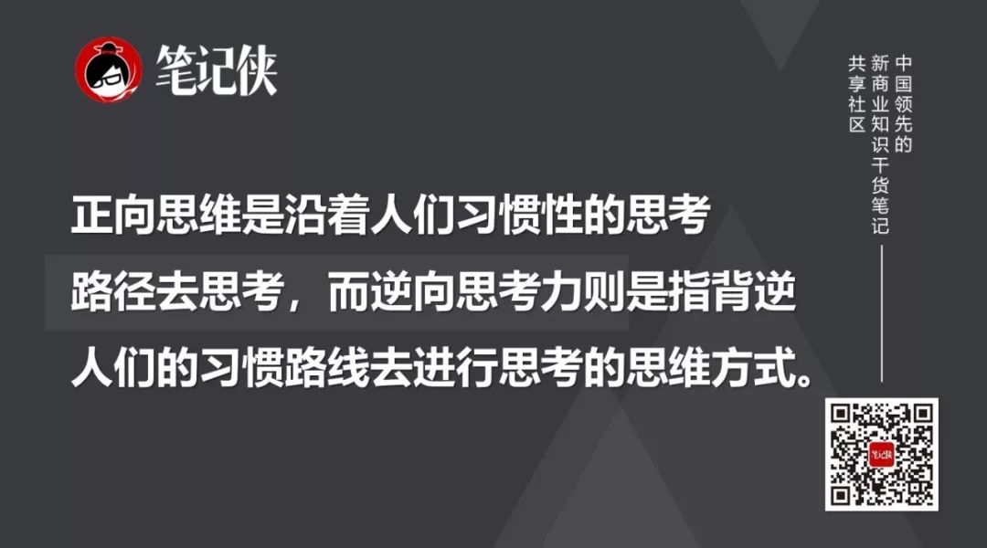 这就是“逆向思考力”的力量,当我们无法用“正向思维”去解决问题的时候,不要忘记我们还有另外一个选项。