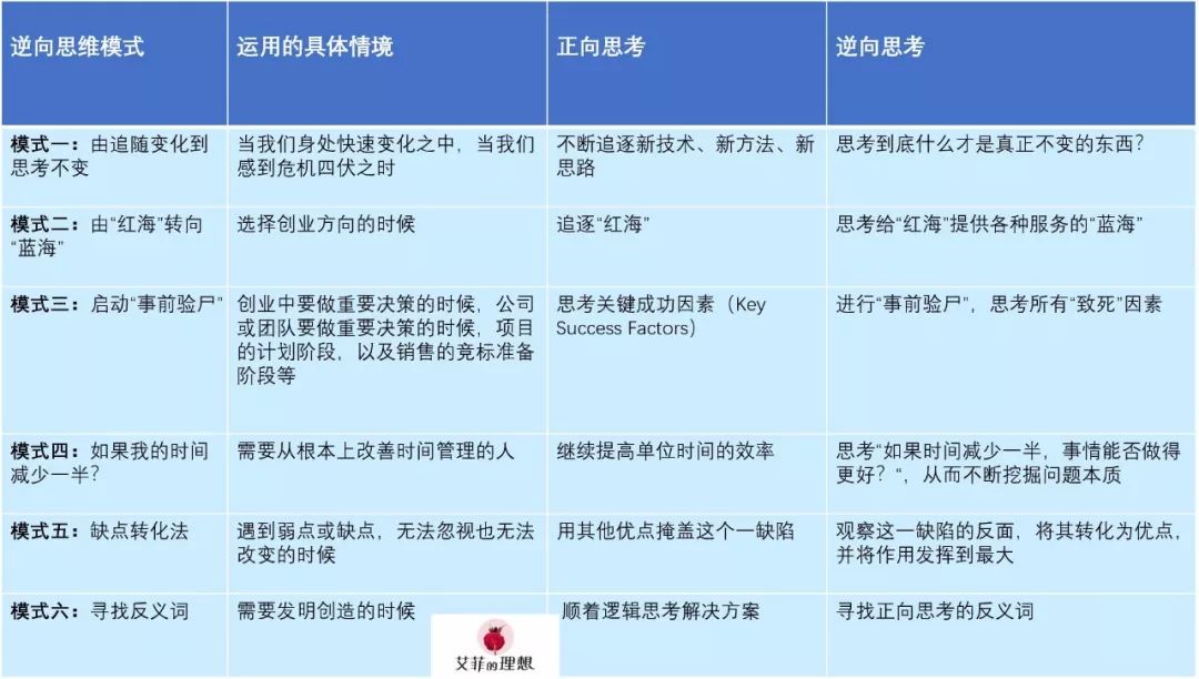 最后,让我们用一张图来总结一下今天的6种逆向思维模式。