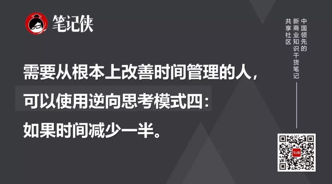 猎豹CEO傅盛在他那篇《认知三部曲》的文章中写到:学会逆向思考,如果花的时间少一半,事情能否做得更好?