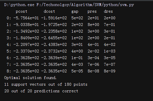 solution = cvxopt.solvers.qp(P, q, G, h, A, b)