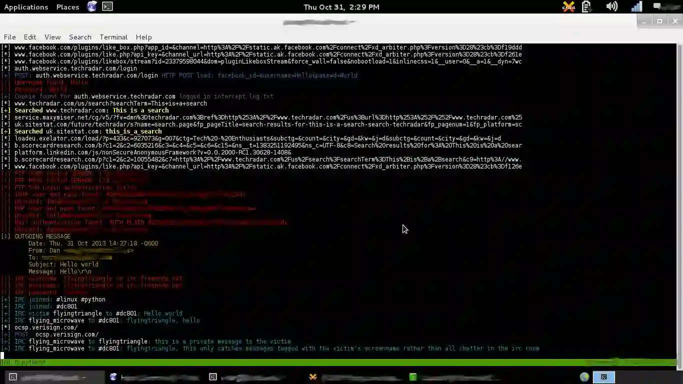 目前该工具支持从以下协议收集数据:HTTP、FTP、IMAP、POP3和IRC。LANs.py将会打印出URL地址所返回的资源中前135个字符,并自动忽略结尾是.jpg、.jpeg、.gif、.css、.ico、.js、.svg和.woff的URL地址。除此之外,它还能够输出任意协议下传输的用户名/密码、以及接收或发送的电子邮件和IRC消息。