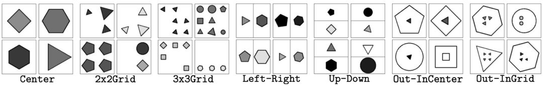 图 4:推荐的 RAVEN 数据集中 7 种不同图形配置的示例。