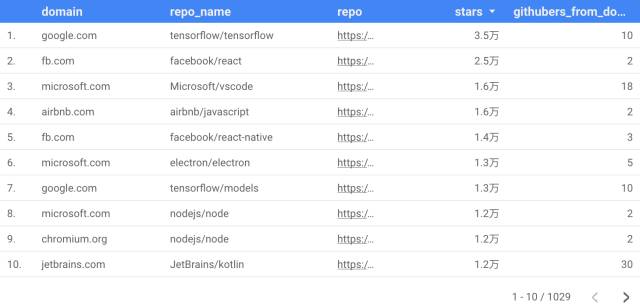 , COUNT(*) githubers_from_domain FROM UNNEST(repos) repo