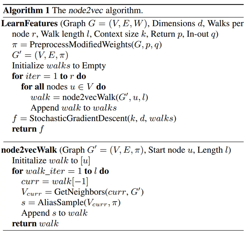 node2vec: Scalable Feature Learning for Networks: https://arxiv.org/abs/1607.00653