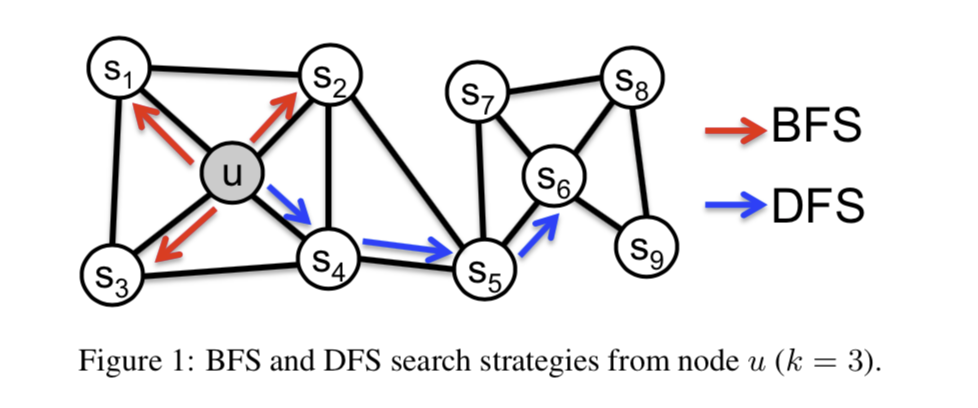 前面介绍过,deepwalk可以认为是 random walk + skip-gram 的模型,random walk本质上是一个dfs的过程,丢失了bfs的邻居结构信息;而node2vec可以简单理解为对deepwalk的随机游走过程进行优化,综合考虑了bfs和dfs的游走方式,提出了『biased random walk』,训练更新仍然是skip-gram那一套。下面来具体介绍~