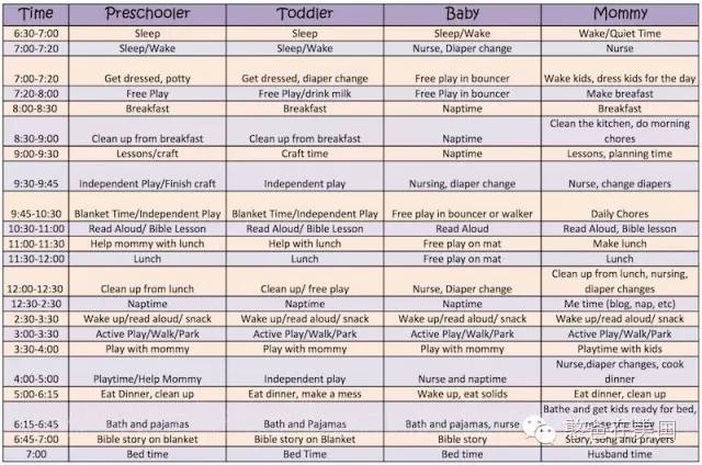 最常见的就是,以时间轴为单位,把每天什么时间段该做什么事情都一条一条地罗列下来,从早上起床开始到晚上睡觉结束。日程表贴在墙上,方便时时参照!