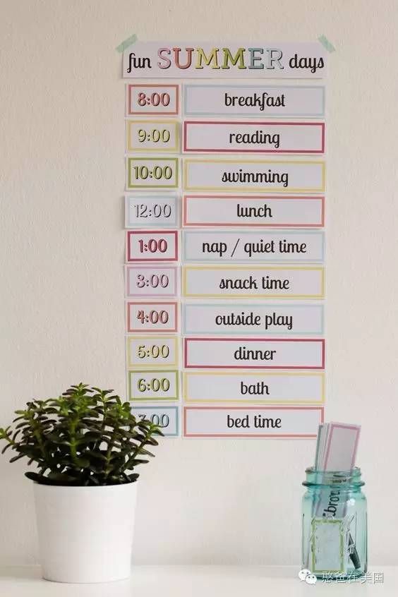 美国很多家庭都会给娃订个Summer Schedule(暑假日程表)。