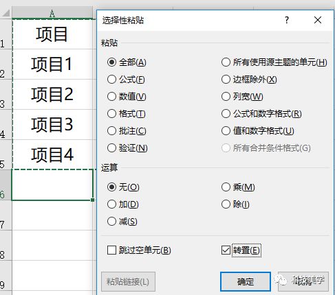 (3)在弹出的“择性性粘贴”设置框中,找到“转置 ”选项并选中打钩,之后点击确定互换完成。