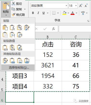 (2)还有一种方法是在子菜单中找到“选择性粘贴 ”,并点击;