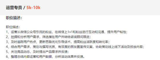 不太能理解?我们来看看下面这个运营岗位JD。互动小问题:你觉得这份运营工作ok吗?如果转行,你想去做这份运营工作吗?