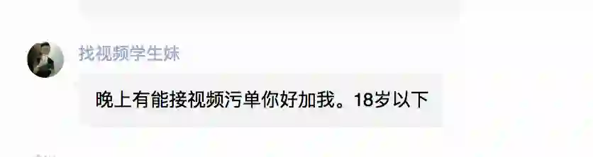 “晚上有能接视频污单的,请加我,18岁以下。”