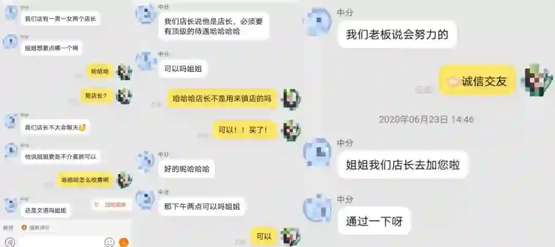 随后,燃财经再次体验了一把半小时的连麦服务,这次提出让店长亲自接单的要求,经过客服的多轮沟通,店长要求按顶级男女神收费,四个小时后,终于收到了店长常一的微信好友申请。