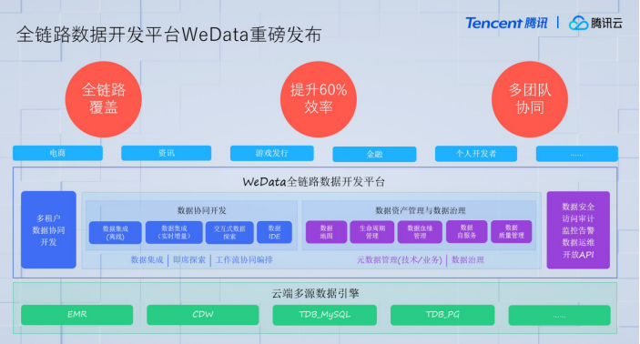 这张图的 C 位、全链路数据开发平台「WeData」,是腾讯云前不久才发布的重磅产品。