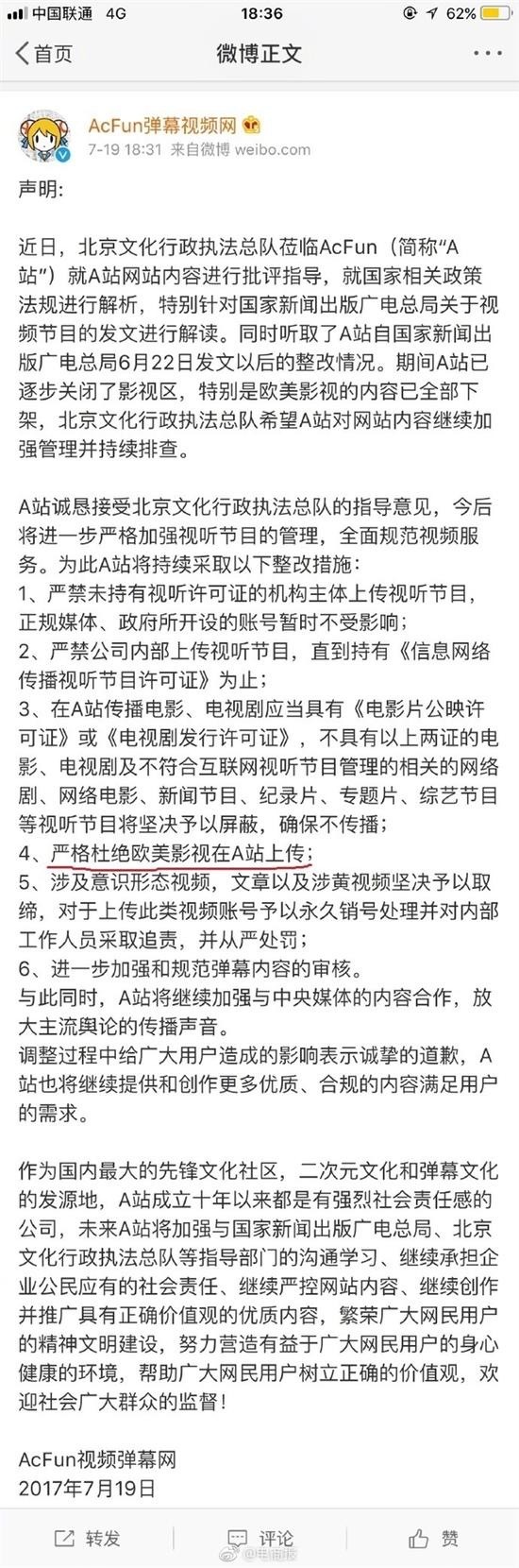 1.A站声明透露下架原因 同时杜绝欧美影视上传