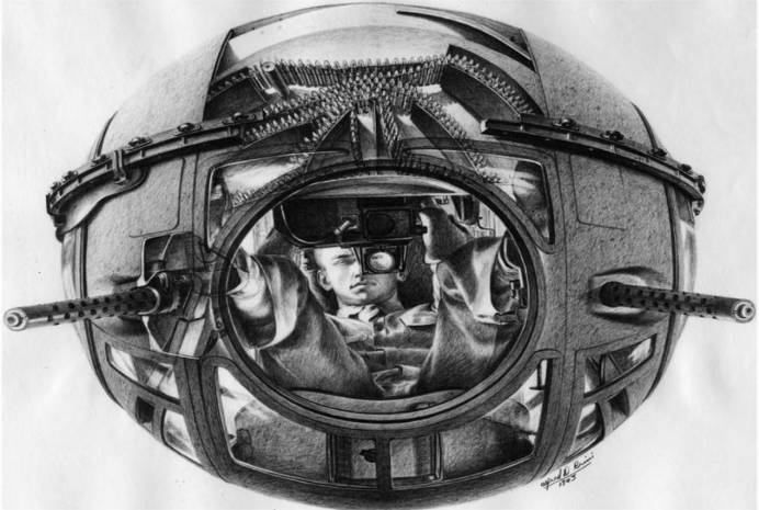 美国陆军航空队B-17“飞行堡垒”,腹侧携带球形炮塔,1944年至1945年被投入战场。