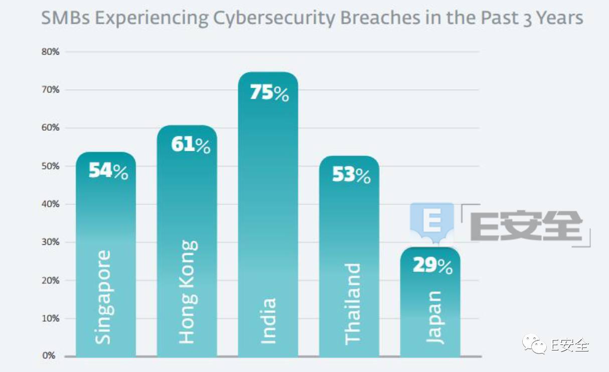 调查报告显示,接受调查的中小企业中,印度有75%的企业过去三年曾遭遇网络入侵,排名第一;香港为61%,排名第二。