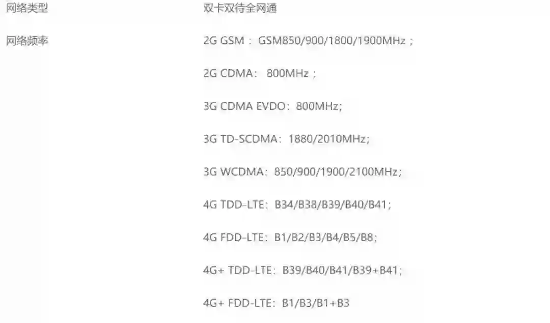 双卡双待全网通不支持两张电信。频段方面数量其实不算全。但是最常用的都有,比如 b5. 不常用就没有了,比如 b7.