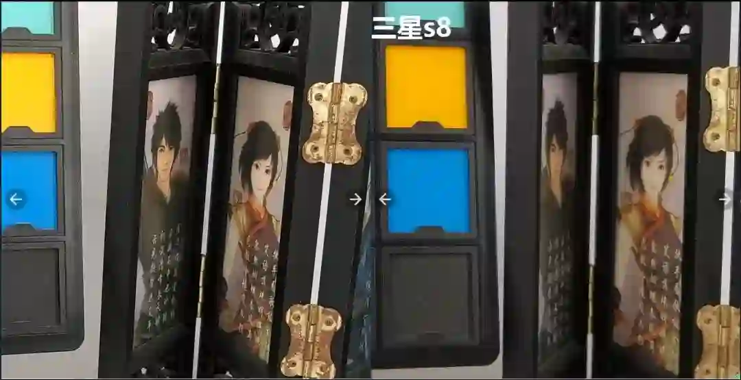 来到实验室场景。vivo 的色块明显有更高的饱和度,而且锐化痕迹非常明显。而 S8,U11,努比亚 Z17s 基本是一样的,可以拍出屏风玻璃的感觉。锐化就是线条清晰,自然景物失真。喜欢不喜欢就见仁见智了。跟小米 MIX 2 比的话, vivo 的画面更纯净,雪白雪白的。但是小米的锐化也没有这么夸张。