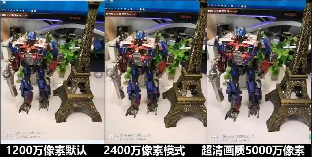 解析力方面。这 3 张分别是默认 1200 万像素, 2400 万像素模式,和超清画质的 5000 万像素。你们可以看看哪个更精致,来猜猜哪个是哪个。买定离手,买定离手。