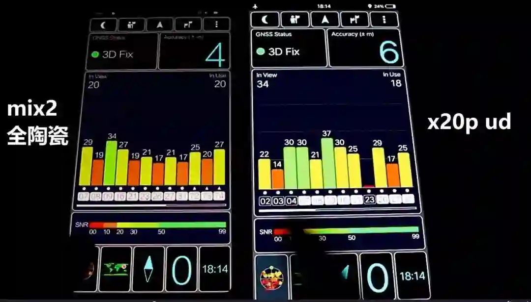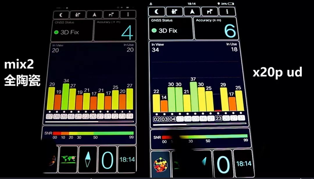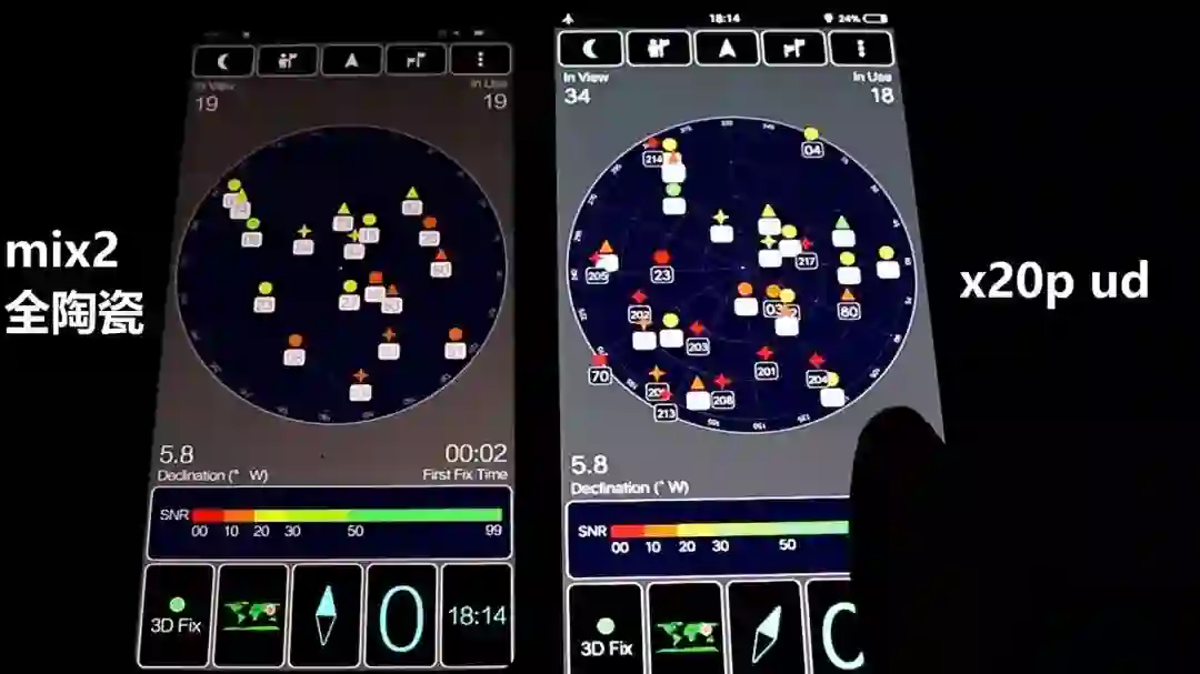 GPS 支持 3 大定位系统。美国 GPS,俄罗斯格洛纳斯和中国北斗。速度精度的表现都非常好,没有被 MIX 2 拉开差距。其实这些都是性价比的一部分。指南针偏了一点。